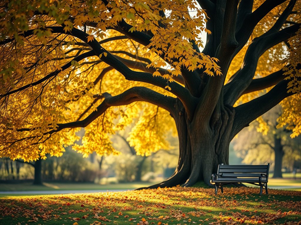 Above me stood a large tree — old, steady, familiar. Its leaves were changing. Most had turned yellow. Some still carried traces of green. A few were already on their way down, resting quietly on the ground.